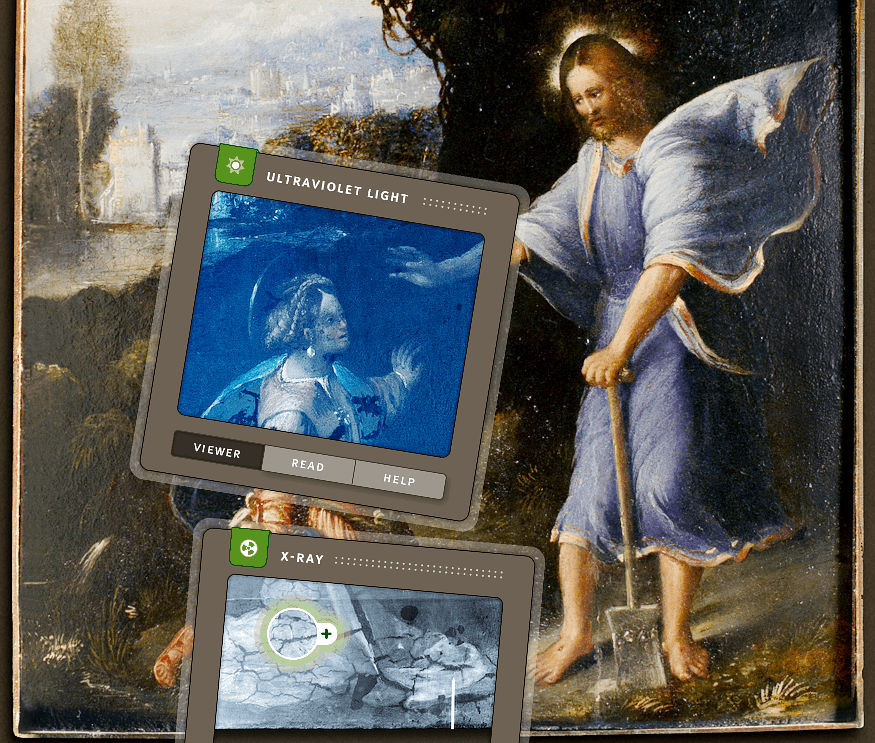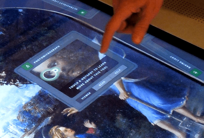Explore a Renaissance painting using modern tools, including X-ray vision and ultraviolet light, on a large multitouch table.
