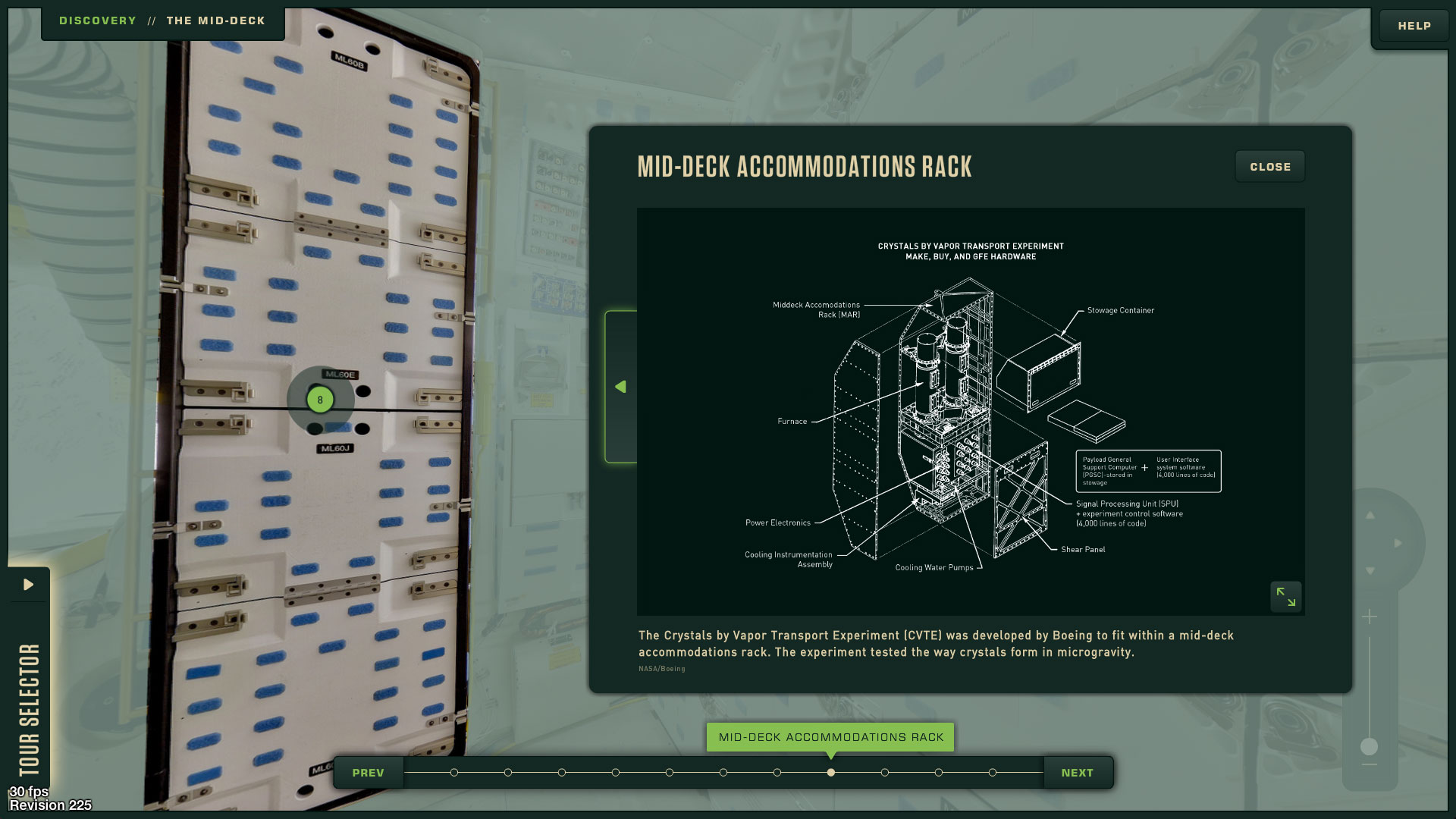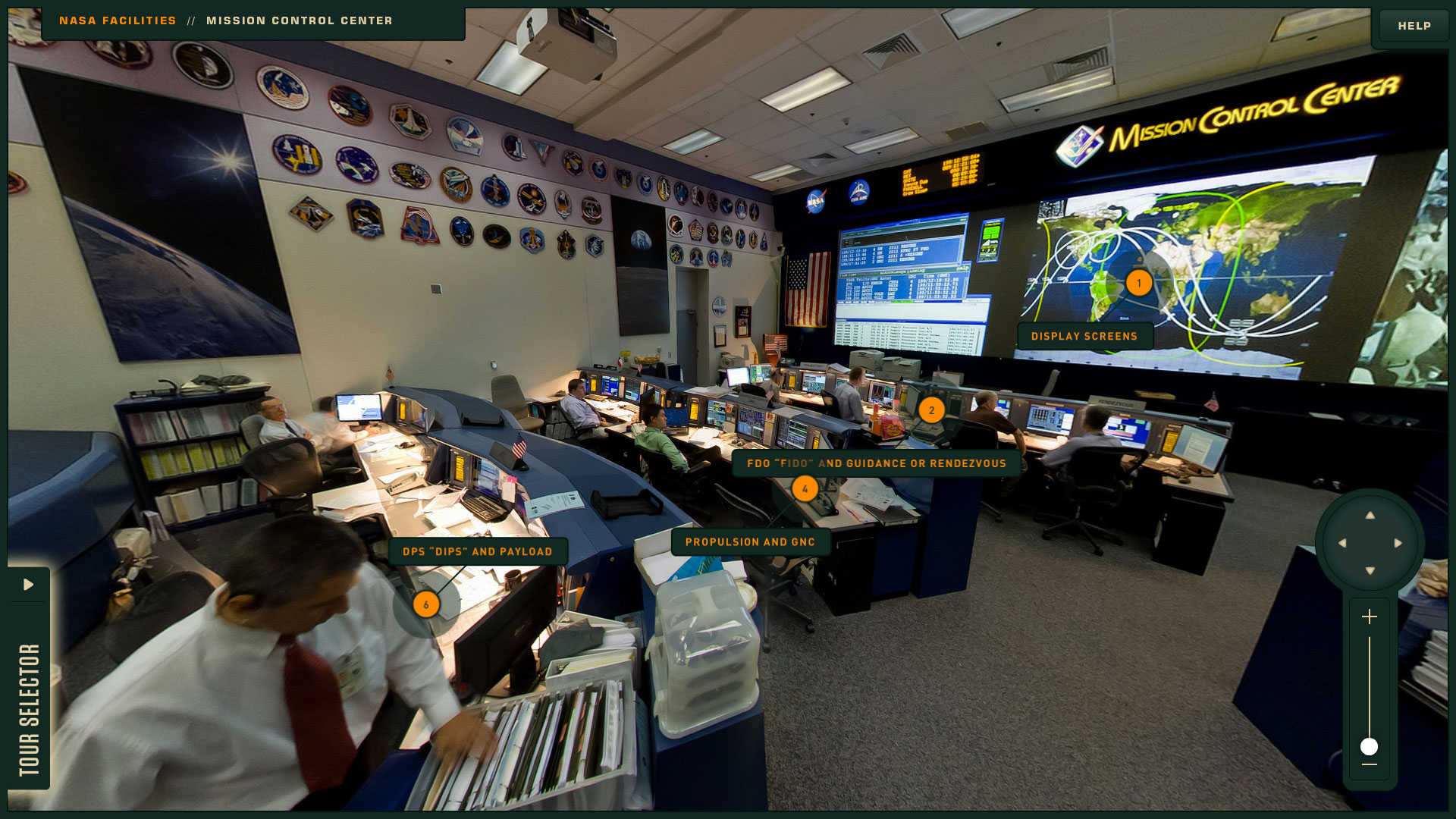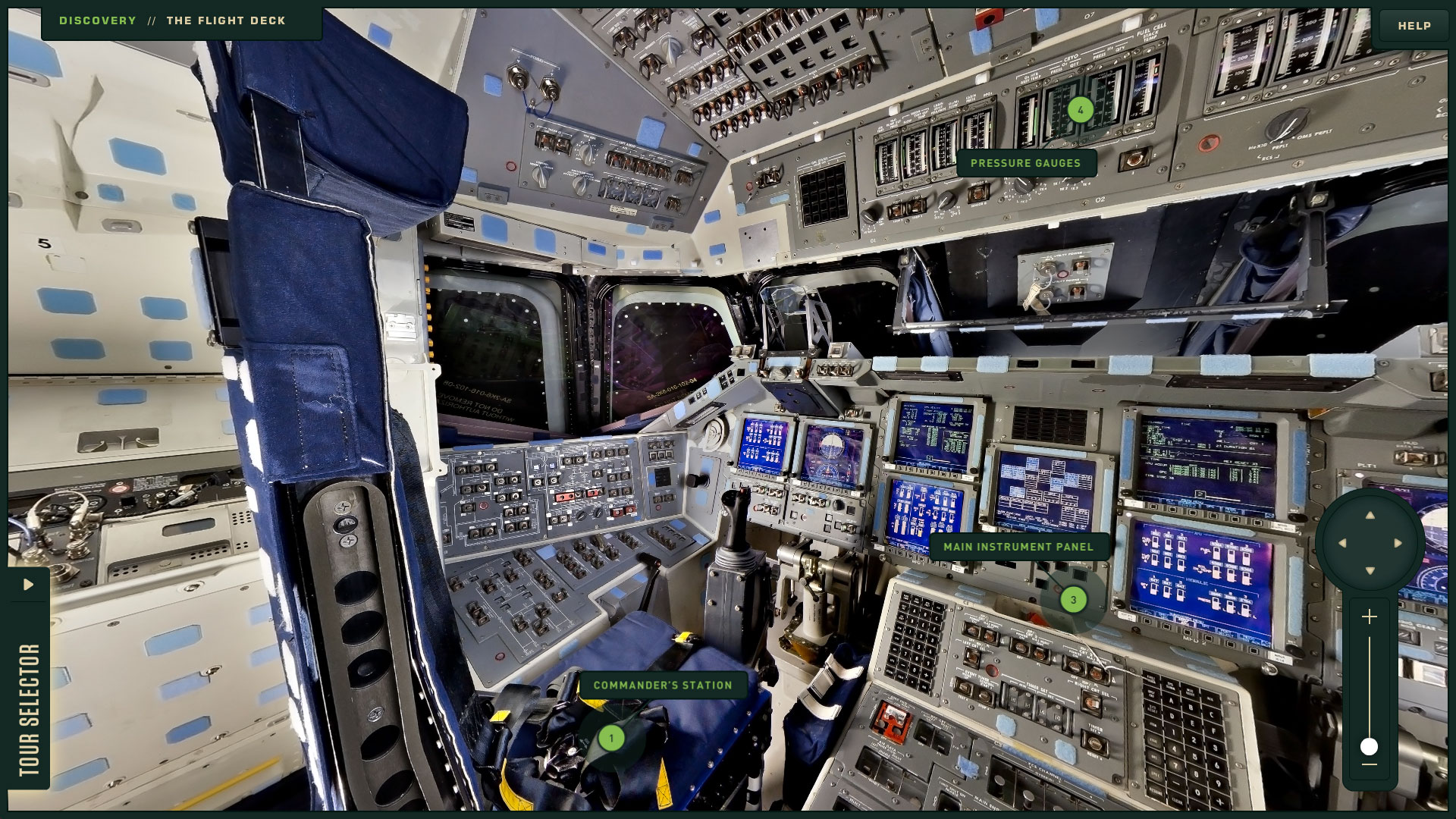 Explore panoramic scenes in fine detail, from NASA Facilities, to the Space Shuttle Discovery and training modules.